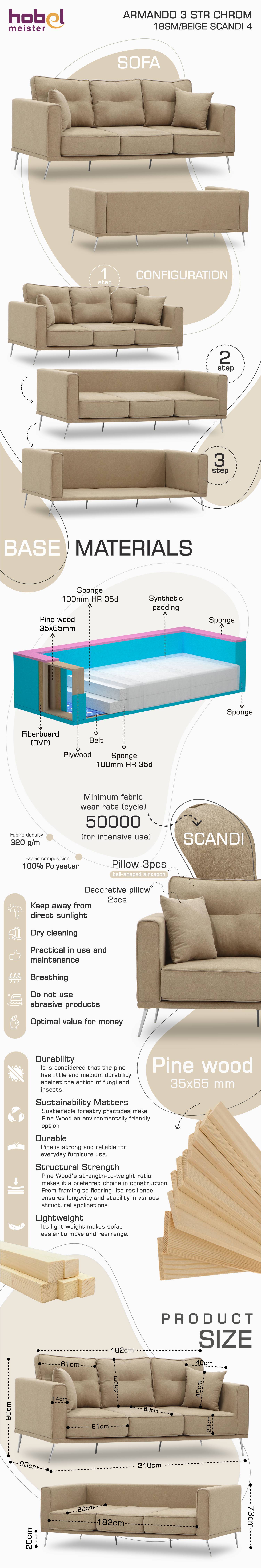 Բազմոցի չափսերը ԼxԽxԲ (սմ) | 210x90x90 |