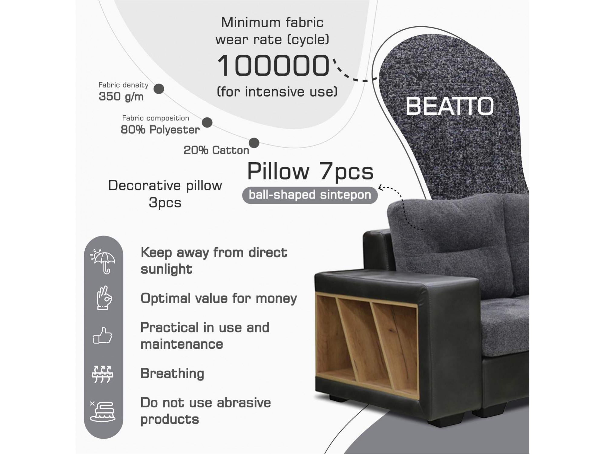 | Դեկորատիվ բարձ (հատ) | 3 |