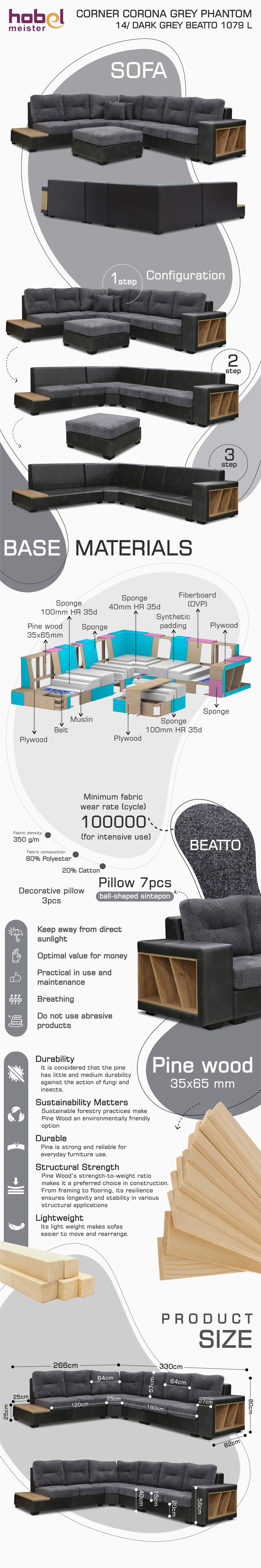| Բազմոցի չափսերը ԼxԽxԲ (սմ) | 330x266x80 |