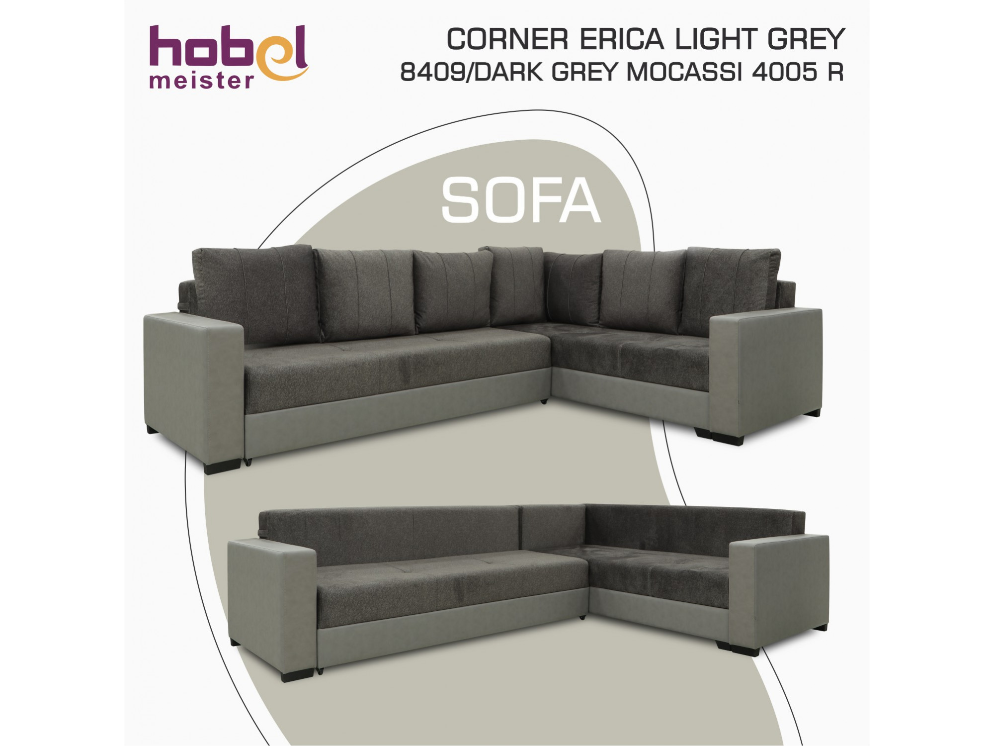 Բազմոց HOBEL CORNER ERICA LIGHT GREY 8409/ DARK GREY MOCASSI 4005 R (6)