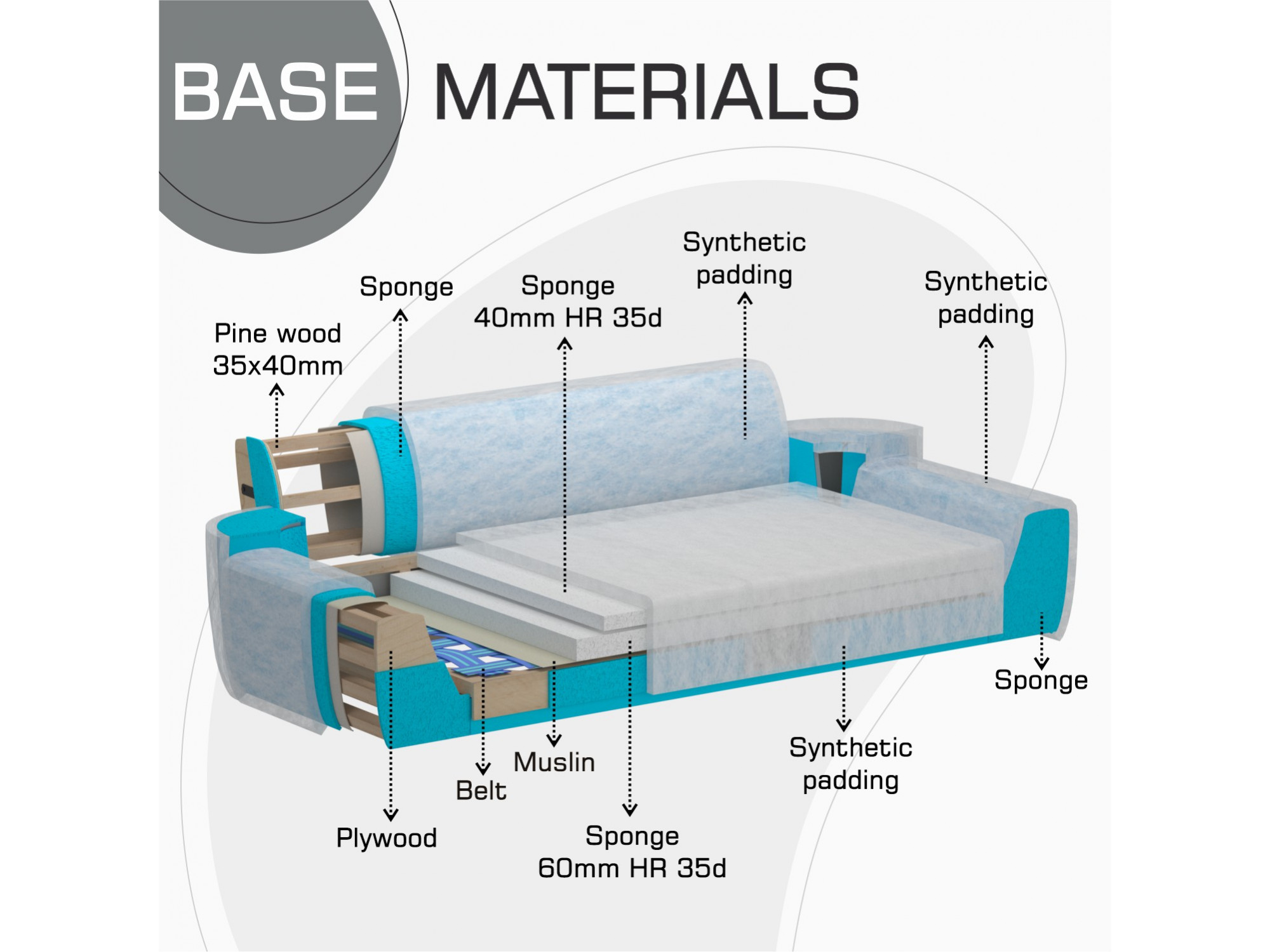 | Սպունգի տեսակը և չափսերը | 6 սմ HR 35/35խտ.,4 սմ HR 35/35խտ. |