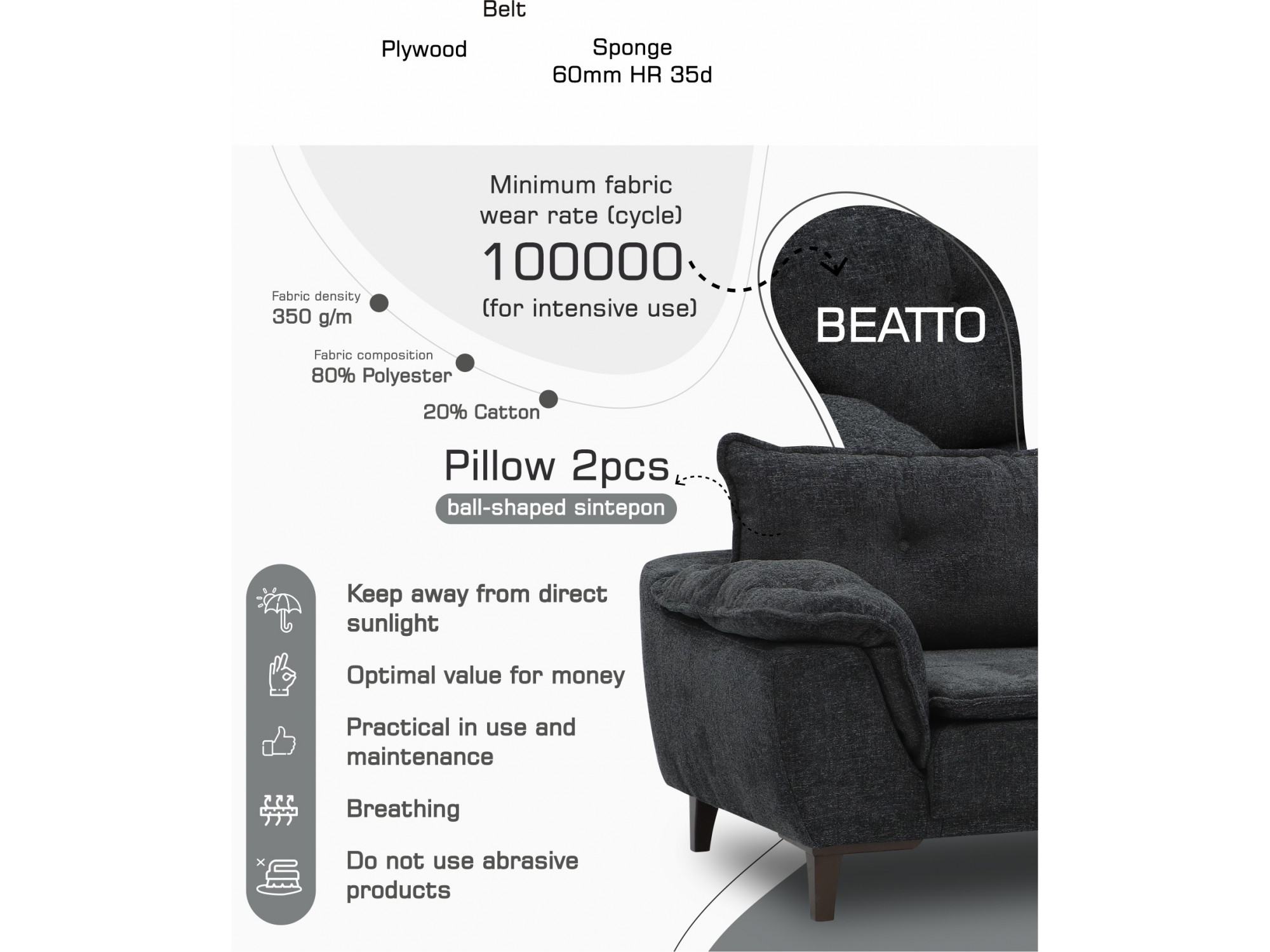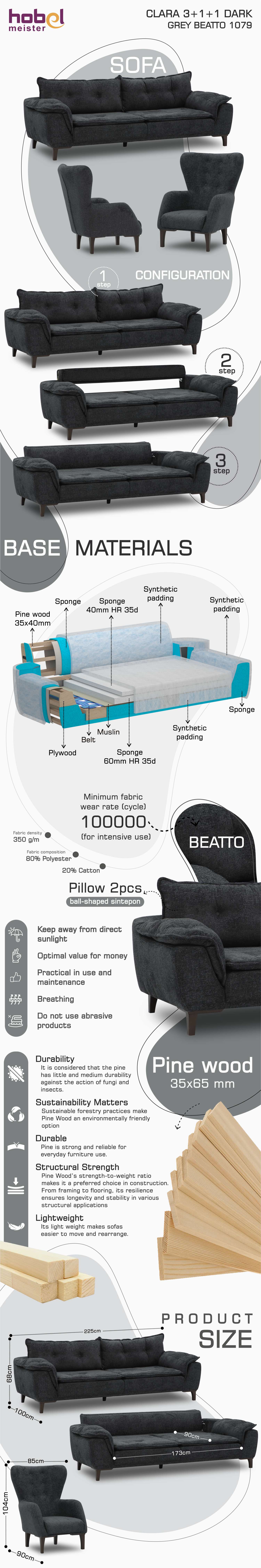 | Բազմոցի չափսերը ԼxԽxԲ (սմ) | 225x100x68 |