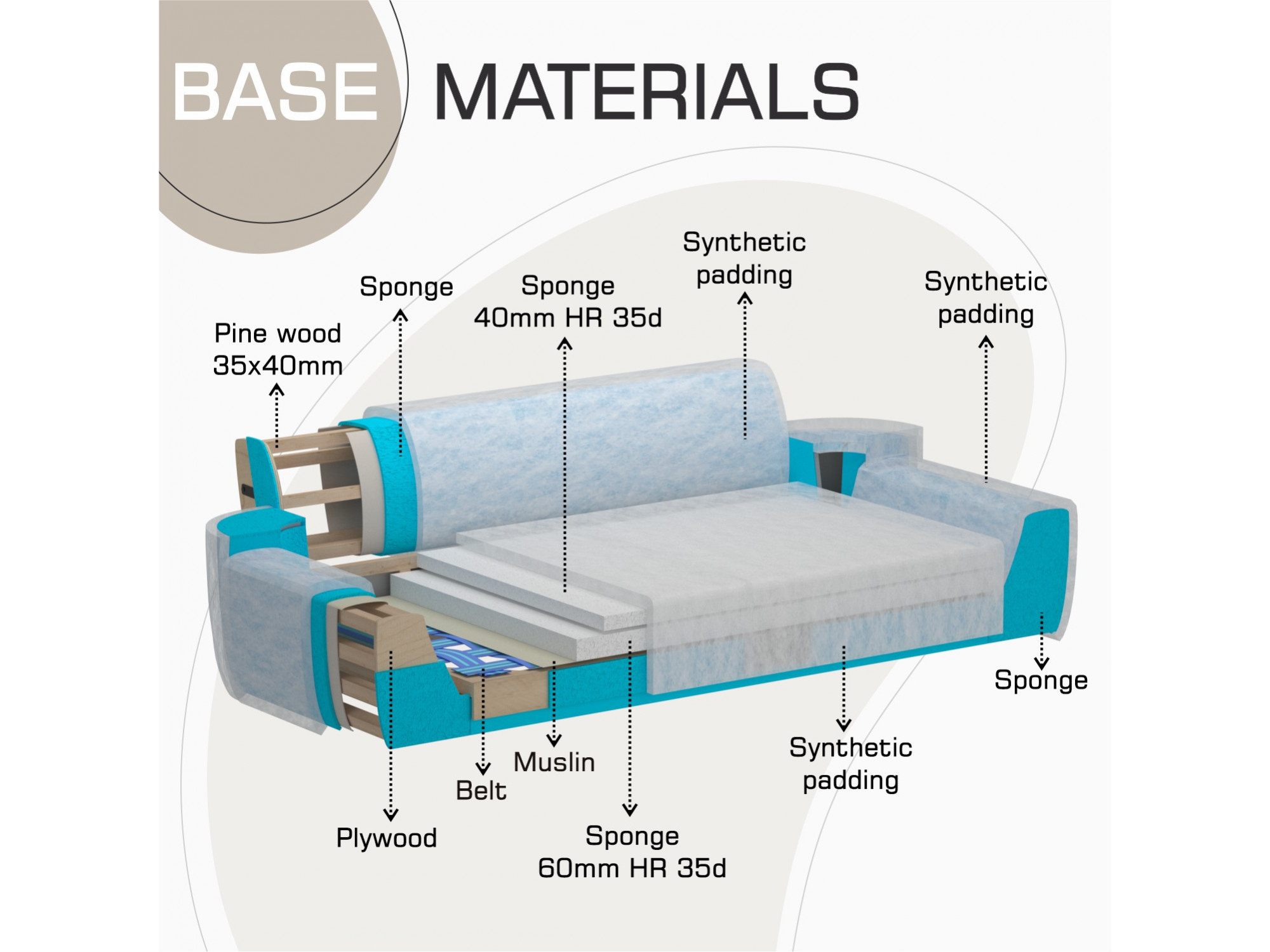 Բազմոցի չափսերը ԼxԽxԲ (սմ) 225x100x68