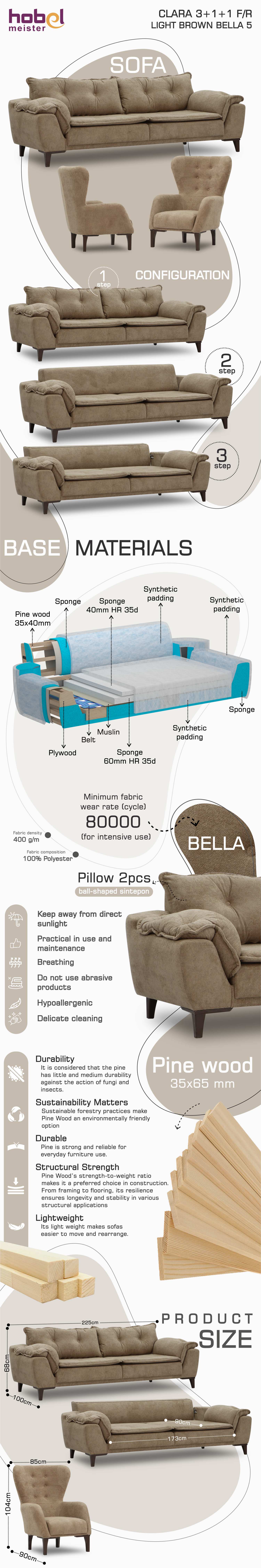 Հավաքածու HOBEL CLARA 3+1+1 F/R LIGHT BROWN BELLA 5 (3)