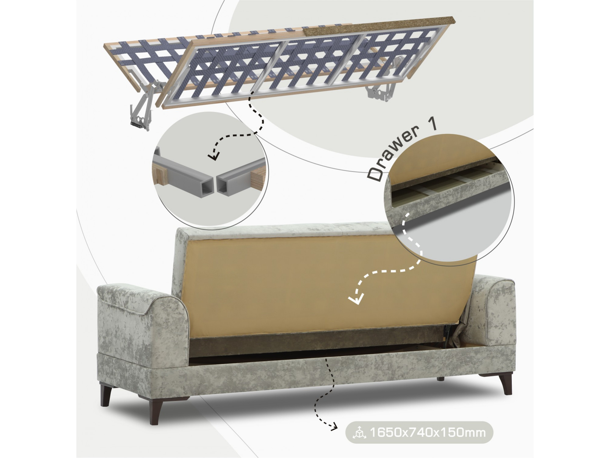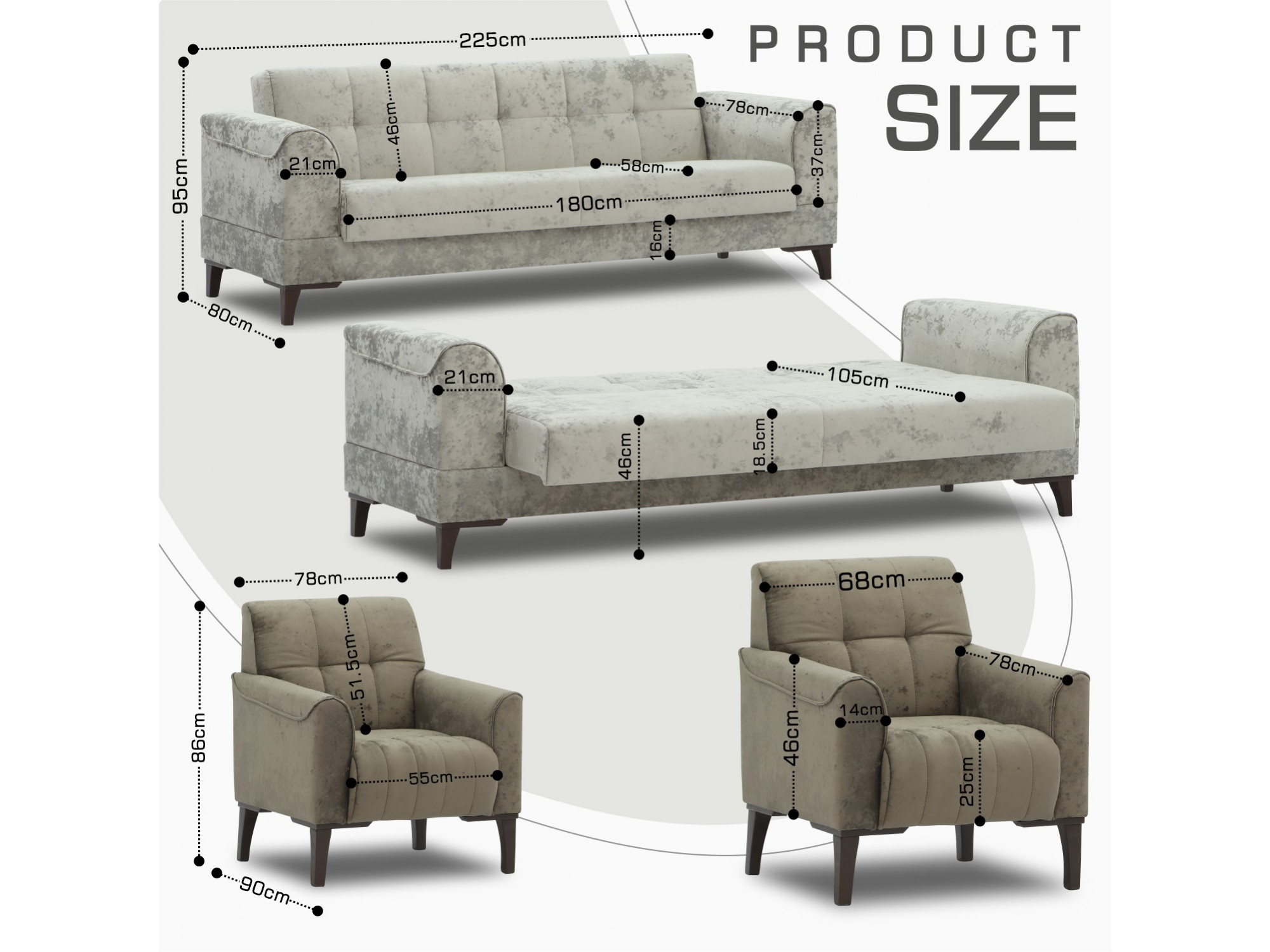 | Բազմոցի չափսերը ԼxԽxԲ (սմ) | 225x80x95 |
