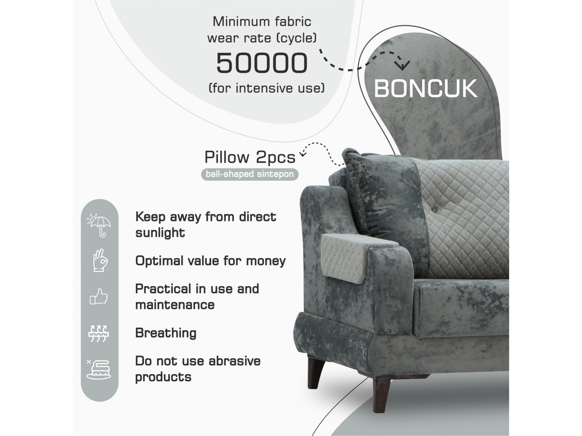 Կտորի նվազագույն մաշված.գործակից (ցիկլ) 25000 (ինտենսիվ օգտագործման համար)