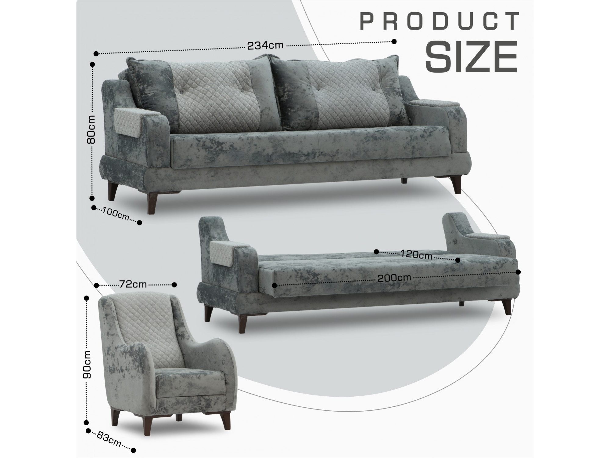 Բազմոցի չափսերը ԼxԽxԲ (սմ) 240x102x85