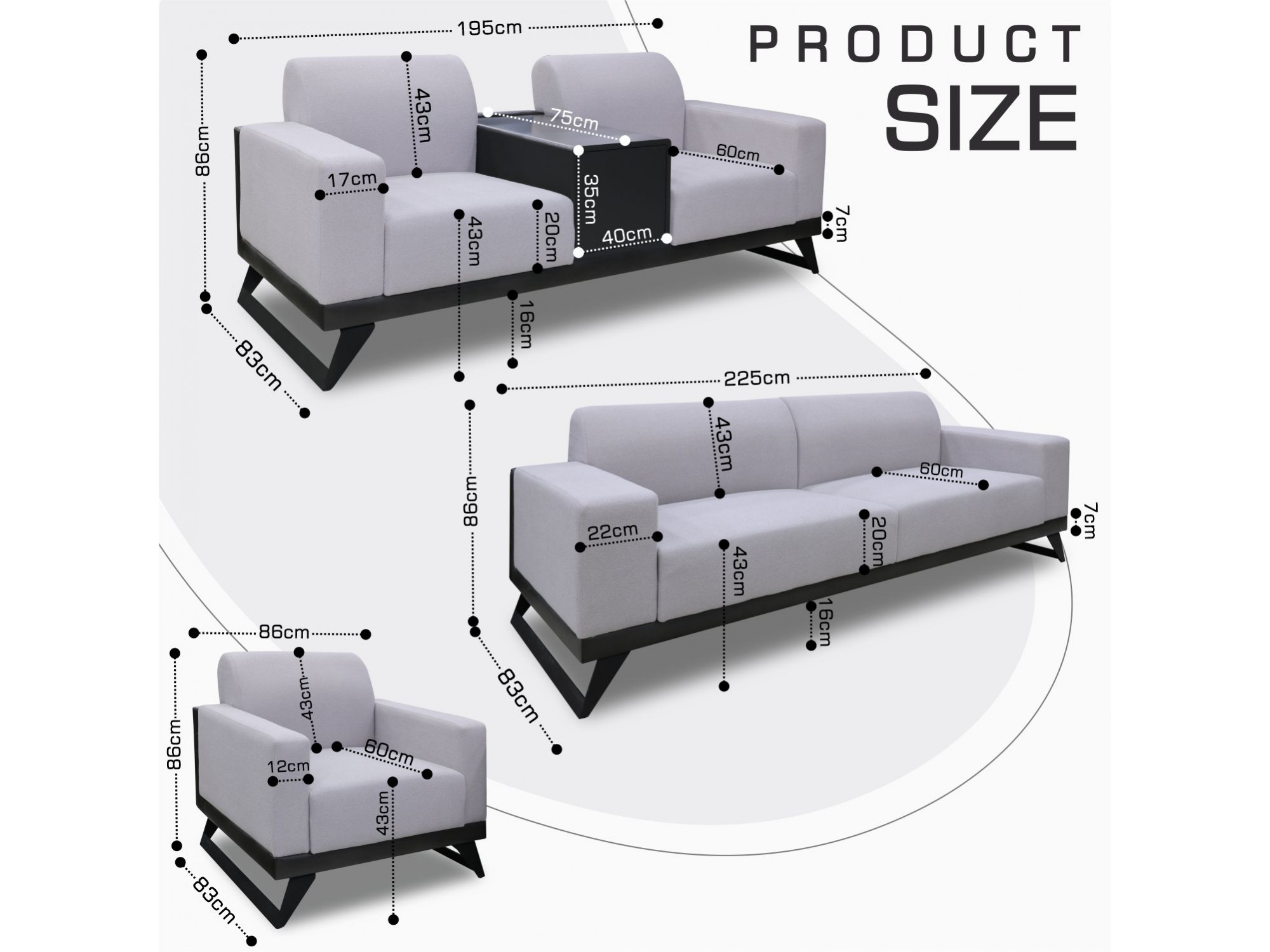 | Բազմոցի չափսերը ԼxԽxԲ (սմ) | 225x86x83/195x86x83 |