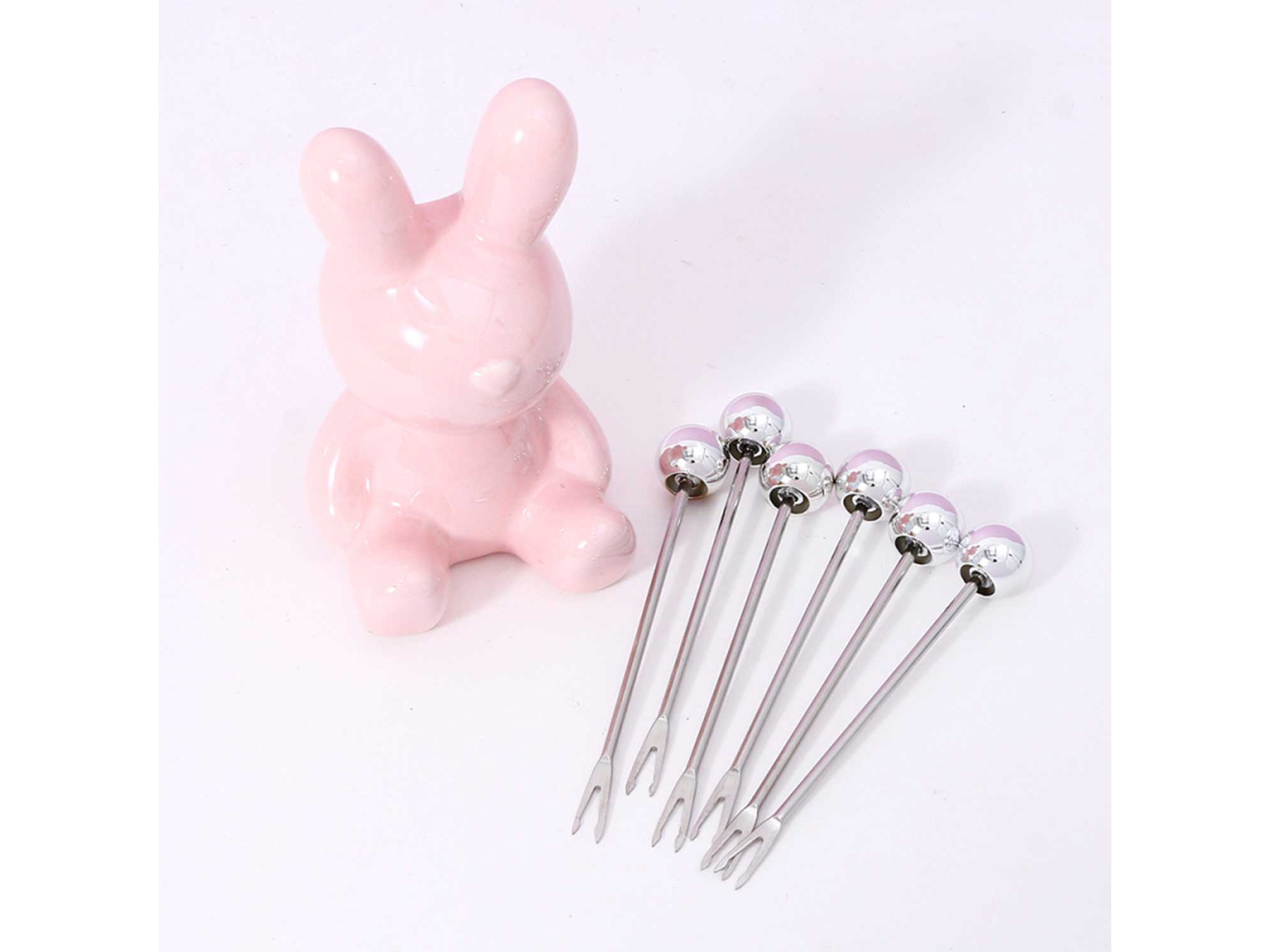 Խոհանոցային պարագաներ XIMI 6942156256686 CUTE BUNNY CARTOON JAR FRUIT FORK (SILVER) (256686)