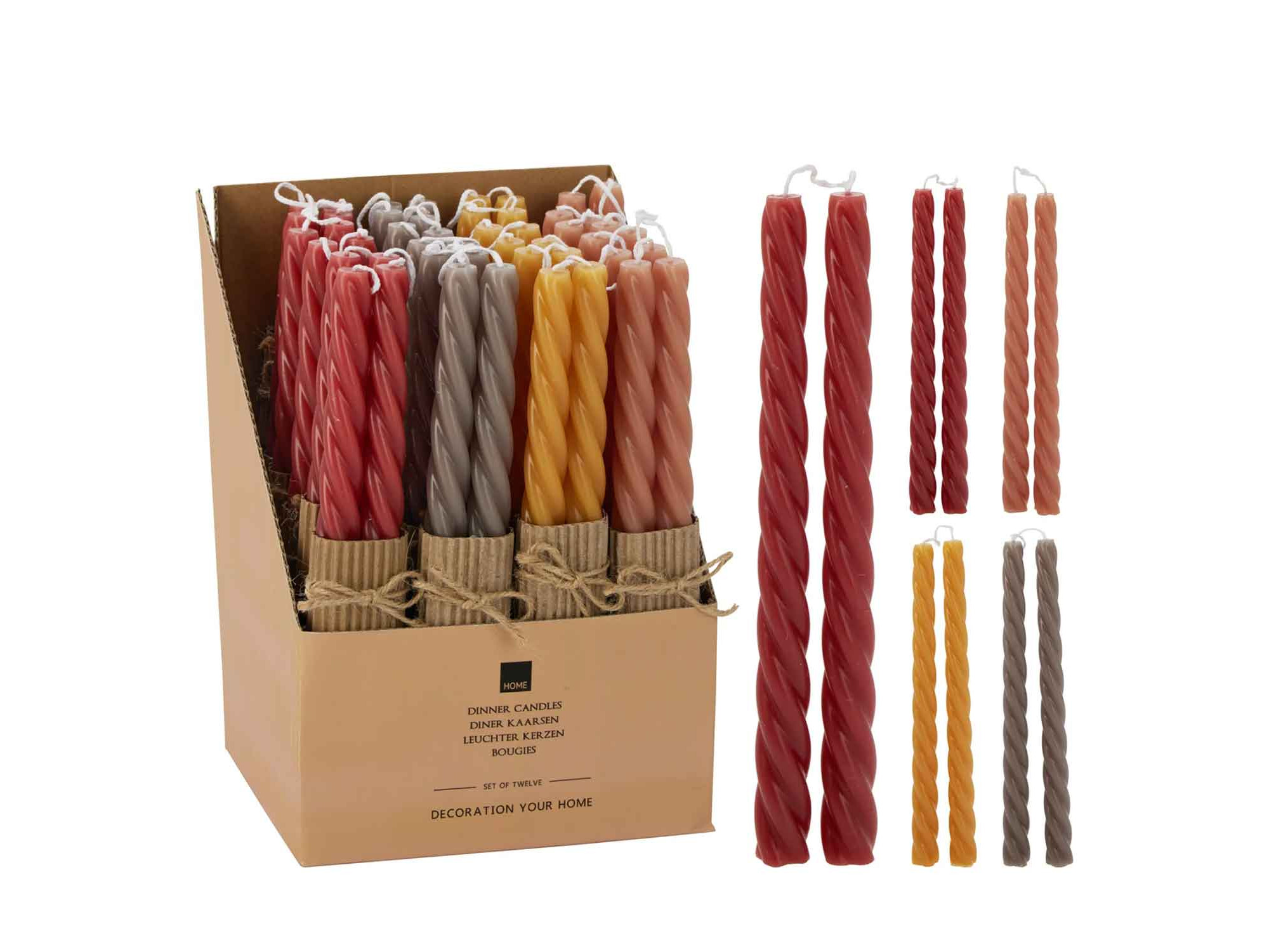 DINNER CANDLE 25CM 4ASS CLR (641333)