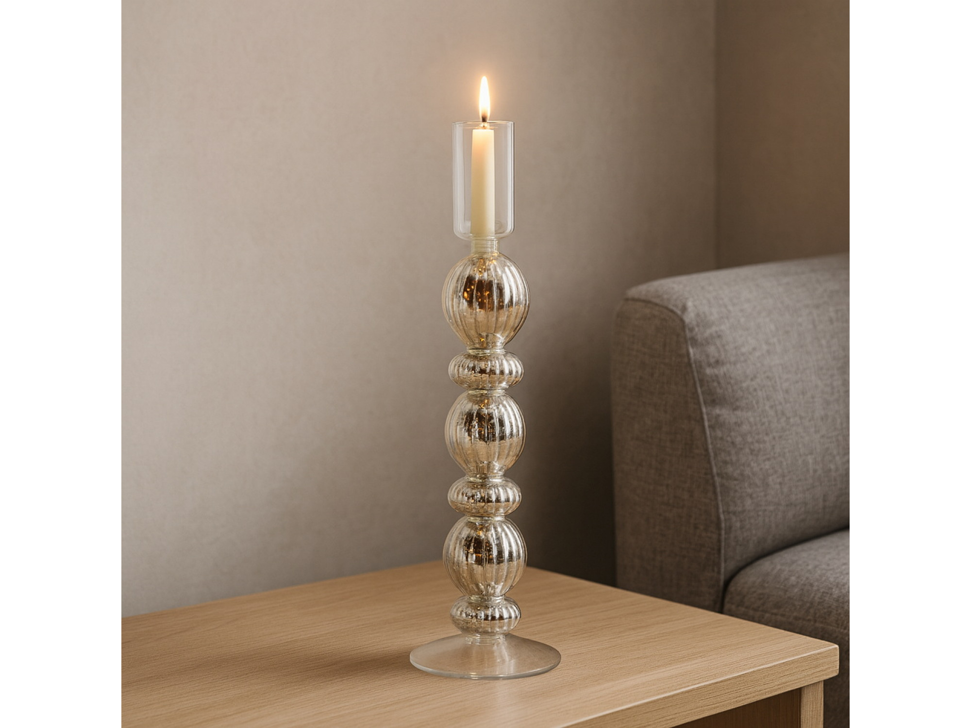 CANDLE HOLDER GLASS 28CM GOLD (062831)