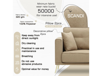 Minimum fabric wear resistance (cycle) 25000 (for intensive use)
