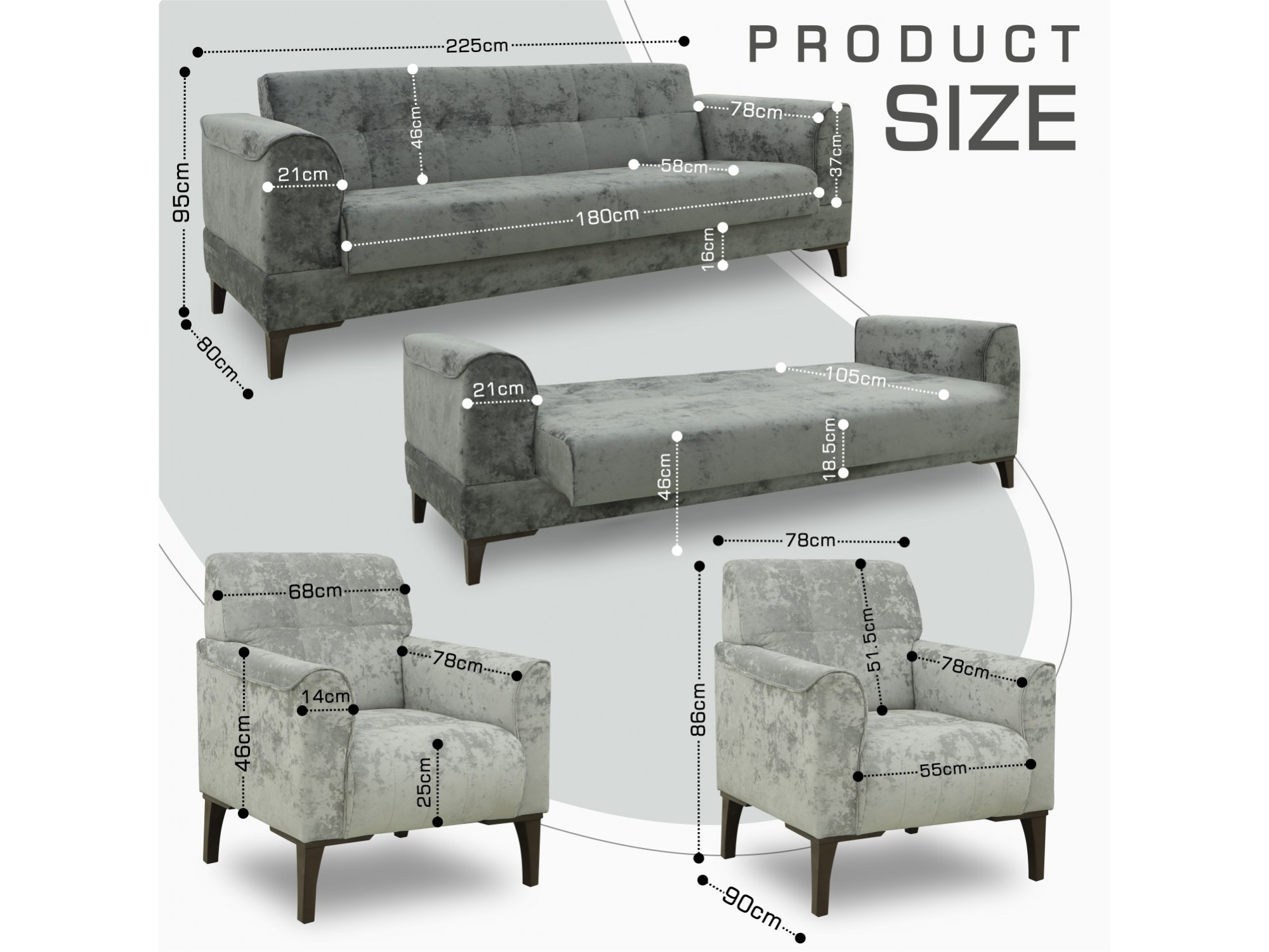 | Размеры дивана WxDxH (см) | 225x80x95 |
