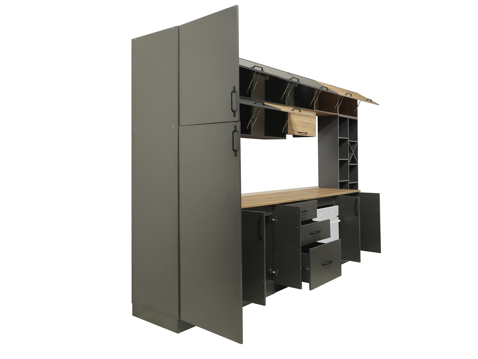 | Размеры верхнего шкафа ДхГхВ (см) | 360x56-30x71 |